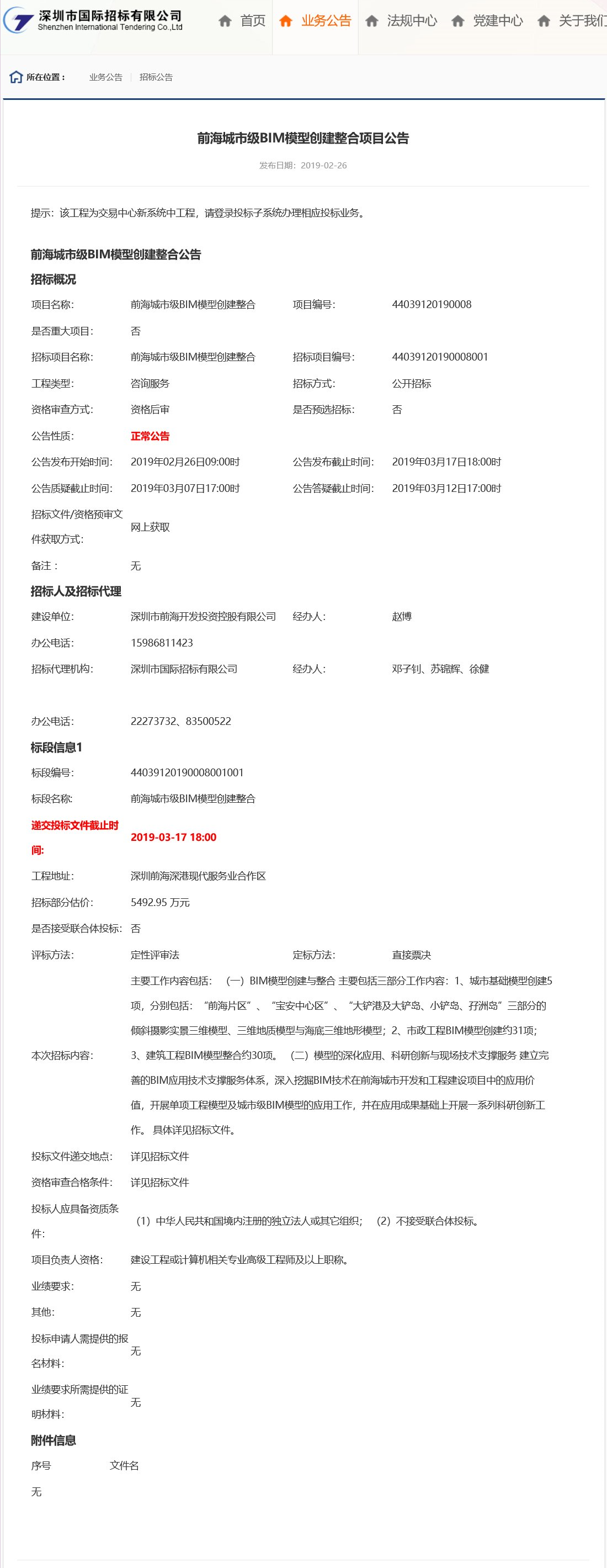 5492萬!前海城市級BIM模型創(chuàng)建整合項目招標公告